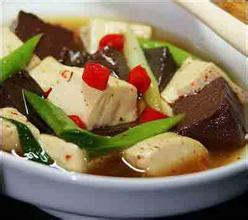 ② 鸭血烧豆腐(治产后贫血)绿豆芽炒肉丝、夏果仁笋粒炒虾仁